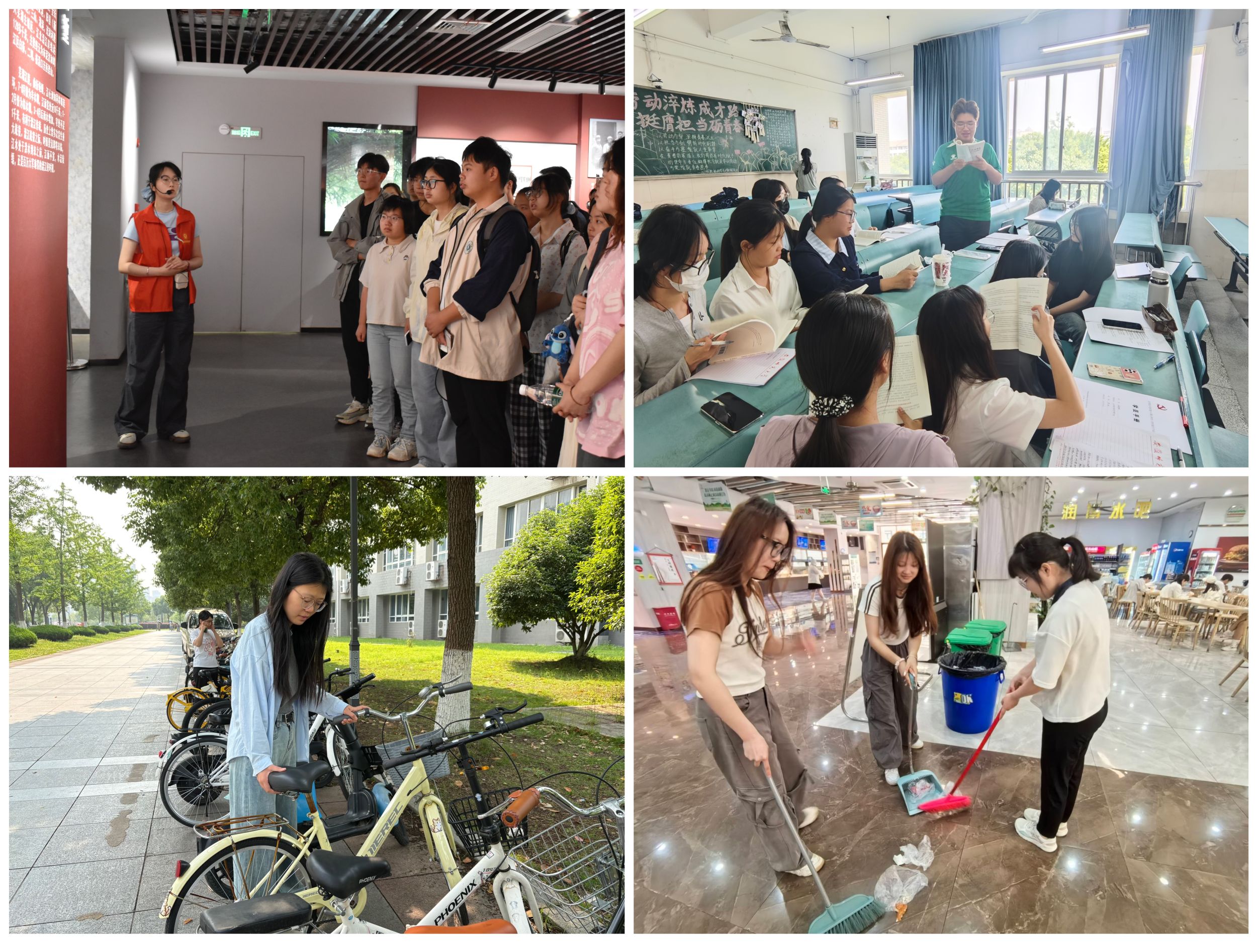 在理论教学的同时,培训班还将理论和实践相结合,分小组来到了渡江第一船纪念馆、五四爱心学校社区服务点、校园内等地,开展主题志愿服务、爱国主义教育基地参观等活动,让每位学员都参与到实践活动中,并形成小组成果,进行交流分享,在实践中感悟,在锻炼中成长。