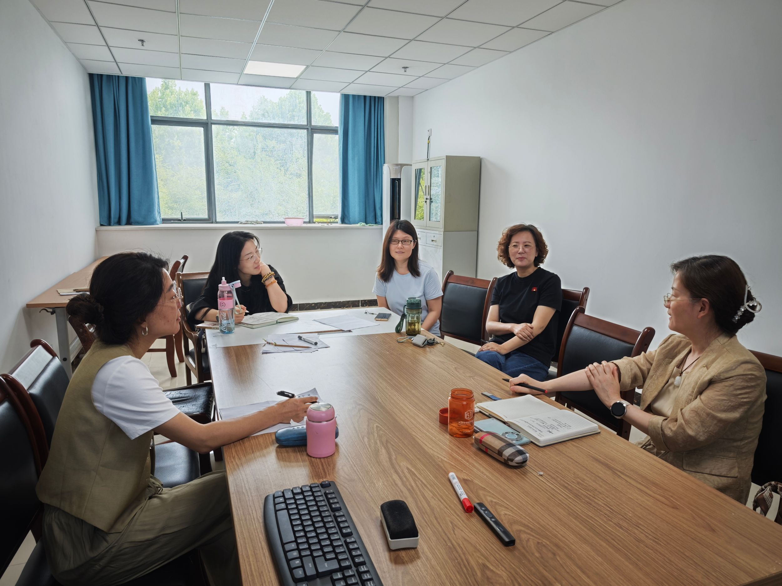 为加强课程建设,提升“语文教师口语训练”课程的教学质量,5月27日下午,“语文教师口语训练”课程组在文典楼F210召开课程教学研讨会。本次研讨会由汪红艳副教授主持,芮瑞副教授、徐莉副教授、刘颖副教授、杨惠副教授以及青年教师张茜参加了会议。